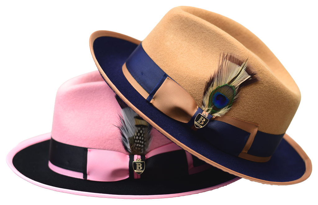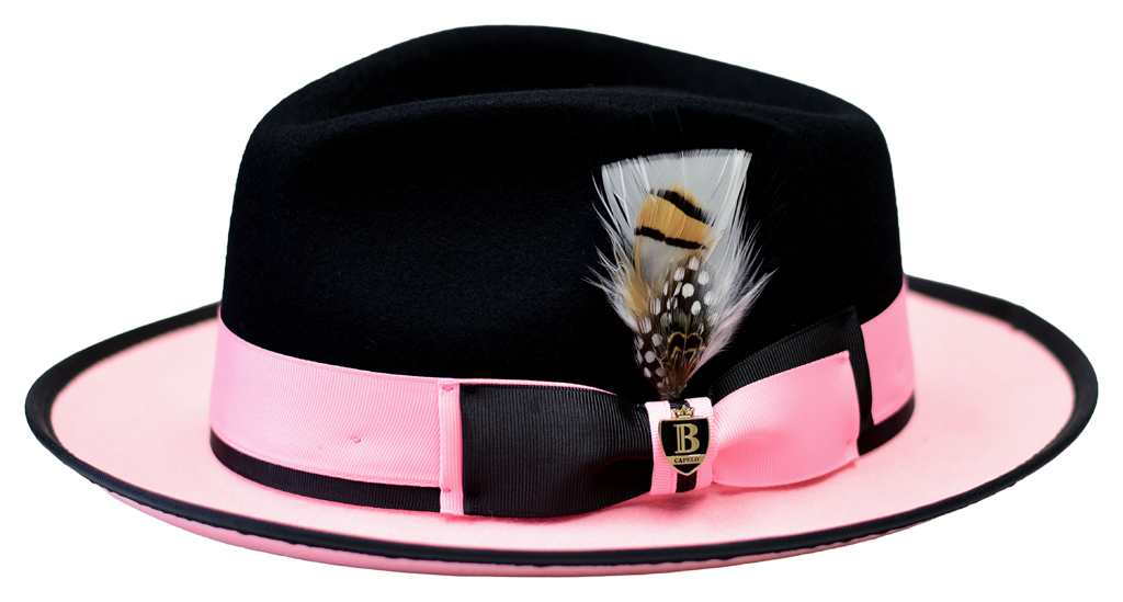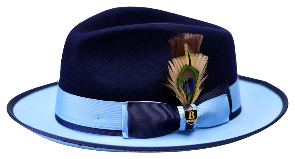 Part of our 2-Tone Collection, the Preston builds on the popular Caesar design. Crafted from 100% fine Australian wool, it features a 2.25" snap brim, 4.5" pinch-front crown, and a 1.5" 2-tone grosgrain band with wingtip bow and feather. Fully satin-lined with an elasticized cotton sweatband and removable B logo pin. Crushable design makes it perfect for travel.